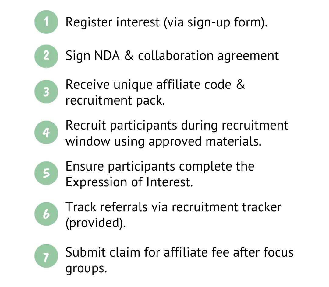 Payment rate: Up to £50 per eligible participant recruited who attends and participates.